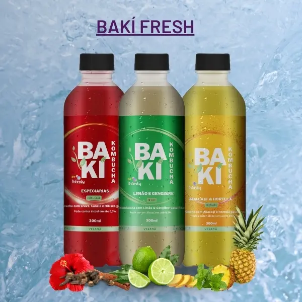 Desfrute da Kombucha Bakí gelada como um refresco saudável, ou acompanhe suas refeições para um toque especial. Ideal para qualquer momento do dia, cada sabor oferece uma experiência única e saudável.
