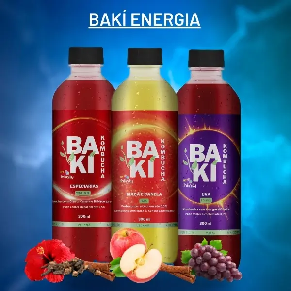 Descubra a linha completa de Kombucha Bakí, disponível em uma seleção de sabores variados que combinam saúde, sabor e refrescância em cada gole. Nossa kombucha é uma bebida fermentada natural, rica em probióticos e repleta de benefícios para o seu bem-estar. Com uma variedade de sabores, você pode escolher o seu favorito ou experimentar todos!